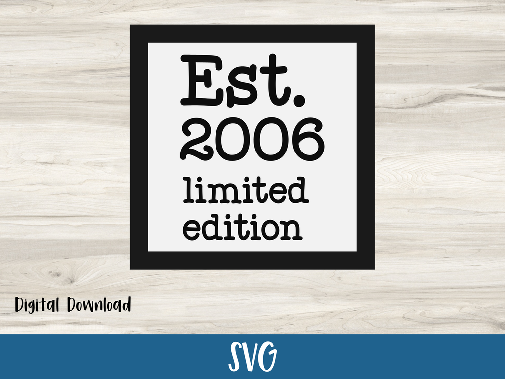 Turning 20 never looked so sharp—celebrate in style with this "Est. 2006 Limited Edition" SVG card file! Perfect for Cricut and Silhouette users, this digital download makes it easy to create a heartfelt handmade card for that one-of-a-kind milestone. Vintage vibes, timeless message, and endless cutting fun!