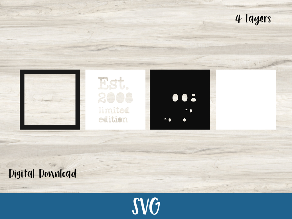 Est. 2008 Layered Birthday Card 18th - SVG Digital File