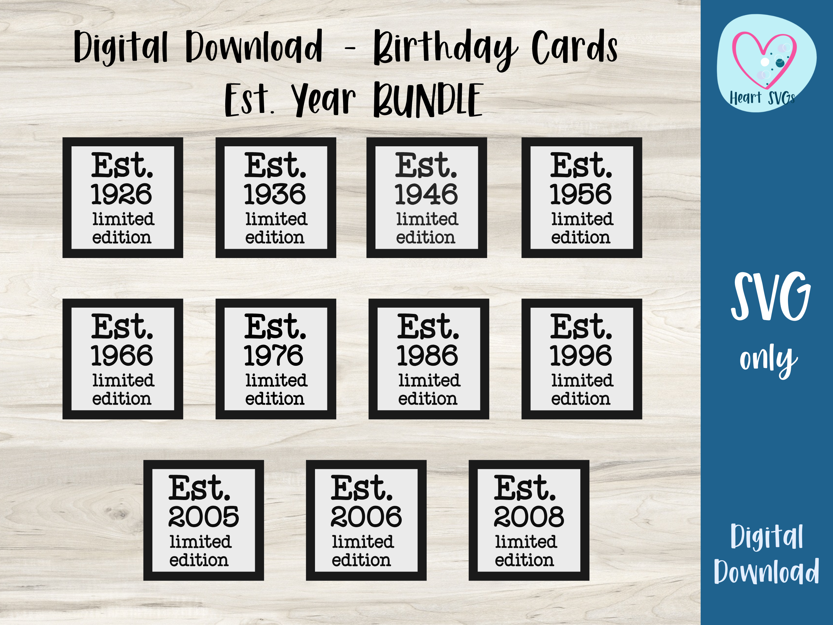 Celebrate every milestone from 18 to 100 with this "Est. Year" SVG birthday card bundle—because legends are born every decade! Whether it’s an 18th, 21st, 30th, or 80th, these stylish and easy-to-cut designs make the perfect handmade card with your Cricut or Silhouette. Just download, cut, and impress—no age discrimination here!