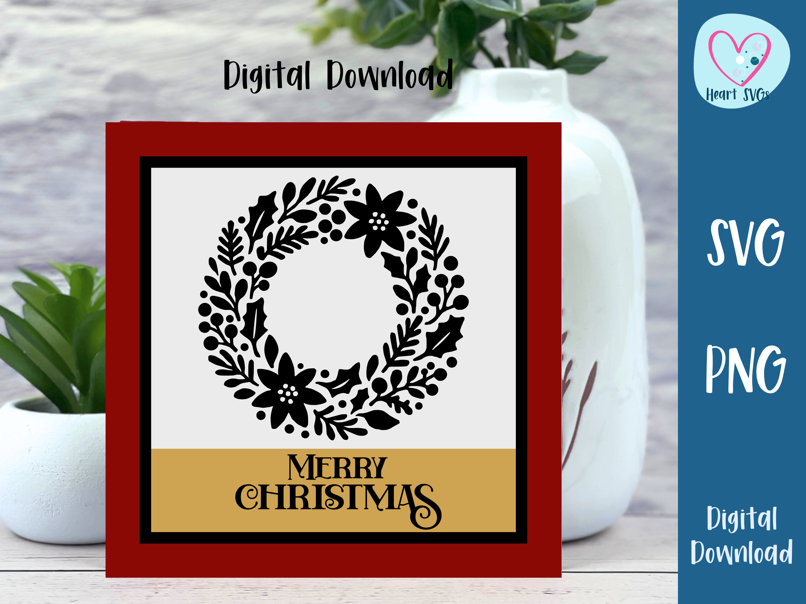 Merry Christmas Wreath Card - SVG Digital File – Heart Supplies