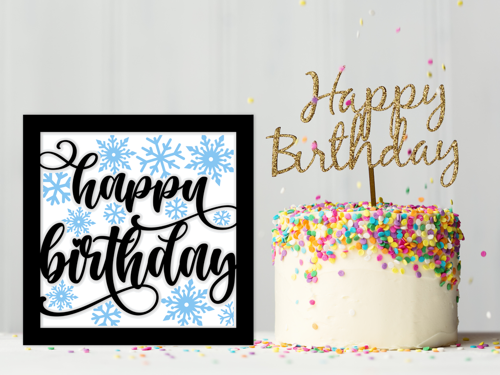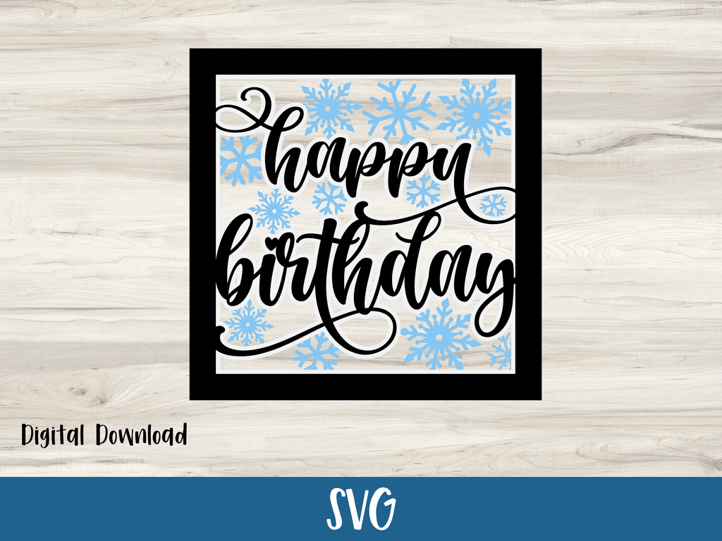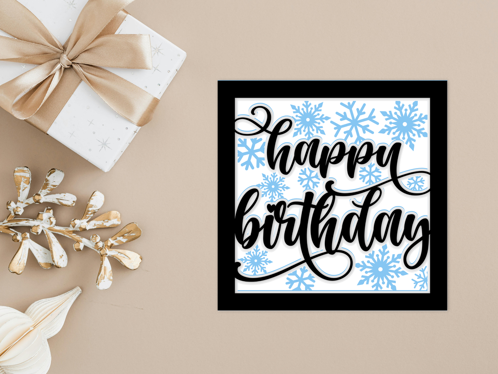 Winter Themed Happy Birthday Card - Layered SVG Digital File